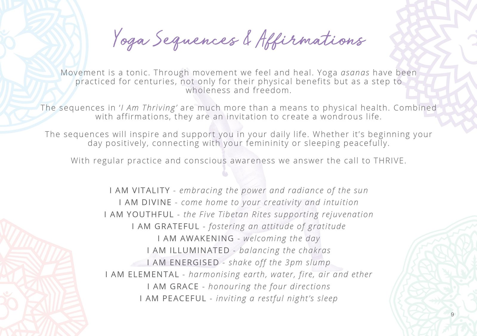 A guide to inspire a life of wellbeing through an everyday practice of Yoga and affirmations.